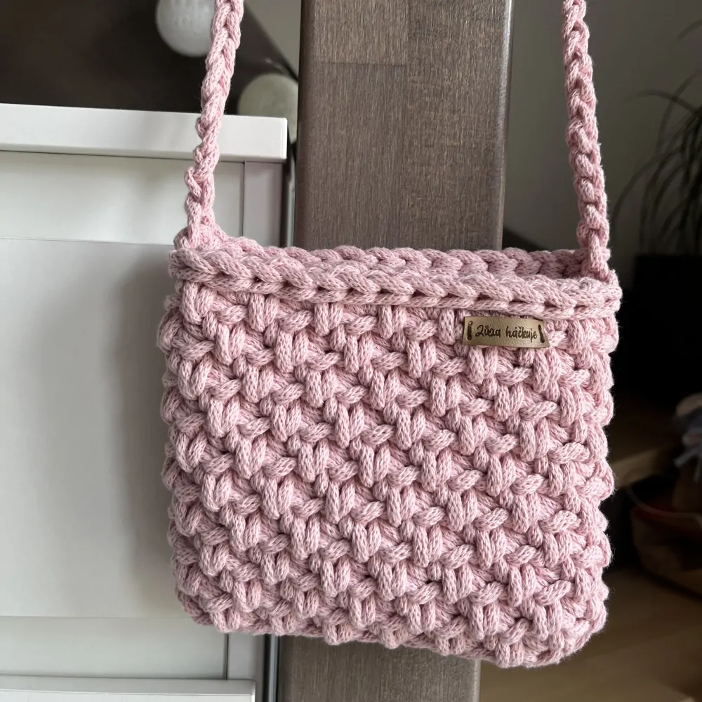 Řemínek kabelky je háčkovaný a dlouhý cca 70 cm, velikostně odpovídá 5 leté dívce.