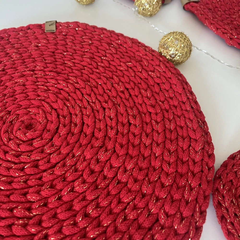 Doprostřed stolu jako jeden kus, do obýváku pod dekoraci/svíčky nebo jako prostírání na jídelní stůl. Vánoční varianta oblíbeného prostírání se zlatou nitkou. Vyberte kteroukoliv barvu, na přání vám pak bude vyrobena se zlatou nitkou.